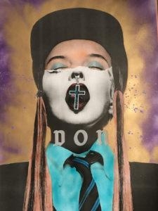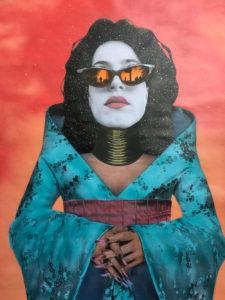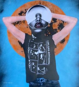7-How did you acquire your style? I have always loved collage, particularly early Linder work and punk flyers from Los Angeles in the 80's. My style came from trying to tell stories with it and incorporating spray paint to put them in a world of their own. Some stories are in twilight, some are in hell, some by the buildings burning before them. Colors have meanings for me. I feel my style was really informed by my ability to tell a story.
