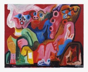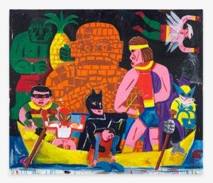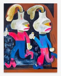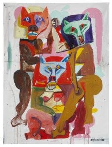 4-Is there any reality behind the characters in your paintings or is it from imagination? Both I guess, they seem to play off each other. I like seeing what happens when a group of characters I paint interact, feels like a play or a performance.