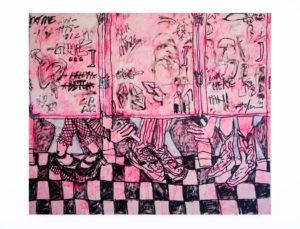 6-How would you describe your art? I’m a painter with a drawing practice. Through many layers of mixing acrylic, oil, pastel, china marker, regular marker and sometimes more, I’m sort of building a bridge between abstract figuration and surrealism, but I wouldn’t consider myself to be in conversation with solely portraiture. I find it extremely difficult to label my style to be frank, but I myself have many layers just like my works do.