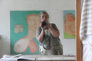 9- What is the origin of each of your paintings (imagination, inspiration….)? A condensed idea. If abstract, maybe from a dream… if figurative, maybe a photograph from a magazine. Each painting usually begins with a wash of color over the whole surface of the canvas and by looking, the painting will hopefully start talking to me.