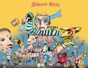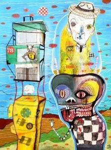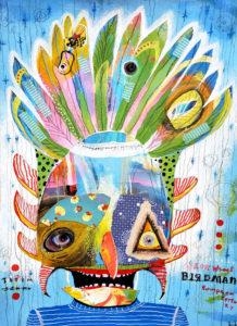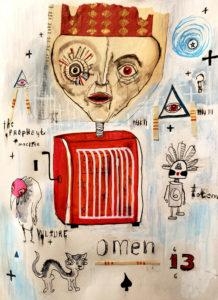 13-Do you have a place/person/thing that you visit for inspiration? I have some go-to books with lots of paintings and drawings by artists I love. My collection of books represents diverse styles and subjects, so I can bounce off in any direction. My aesthetic is towards a dada style. Things don't have to make sense or go together logically. They just need to evoke a feeling of play and crazy energy.