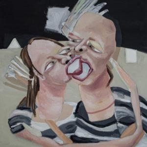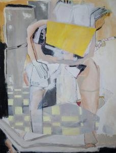 7-What is the origin of each of your paintings (imagination, inspiration....)? My work is completely derived from imagination. I do not work from photographs or specific memories. I work from a compilation of the many ideas I have swirling in my head, filter through it and eventually land on a composition and concept. There is a play between control and the lack thereof in my work, both thematically and technically. The core imagery I begin a painting with has intention, has a language in mind, has covert meanings. As the work develops a bit more and the play of painting unfolds I can be more loose and I enjoy that spontaneity in imagery and gesture.