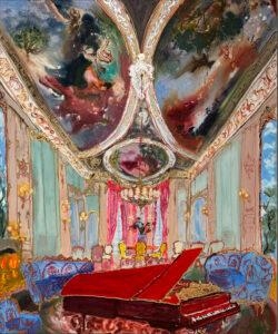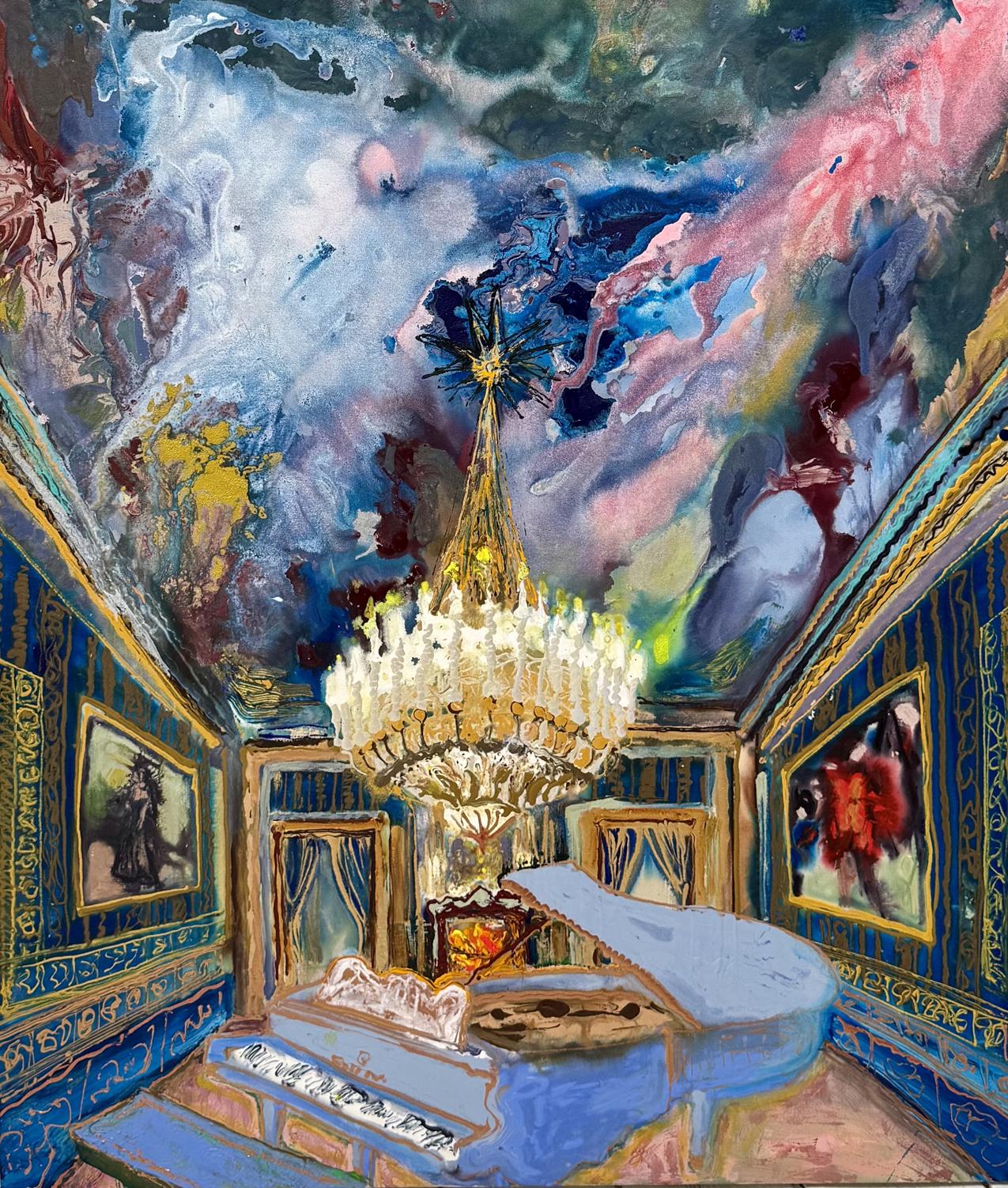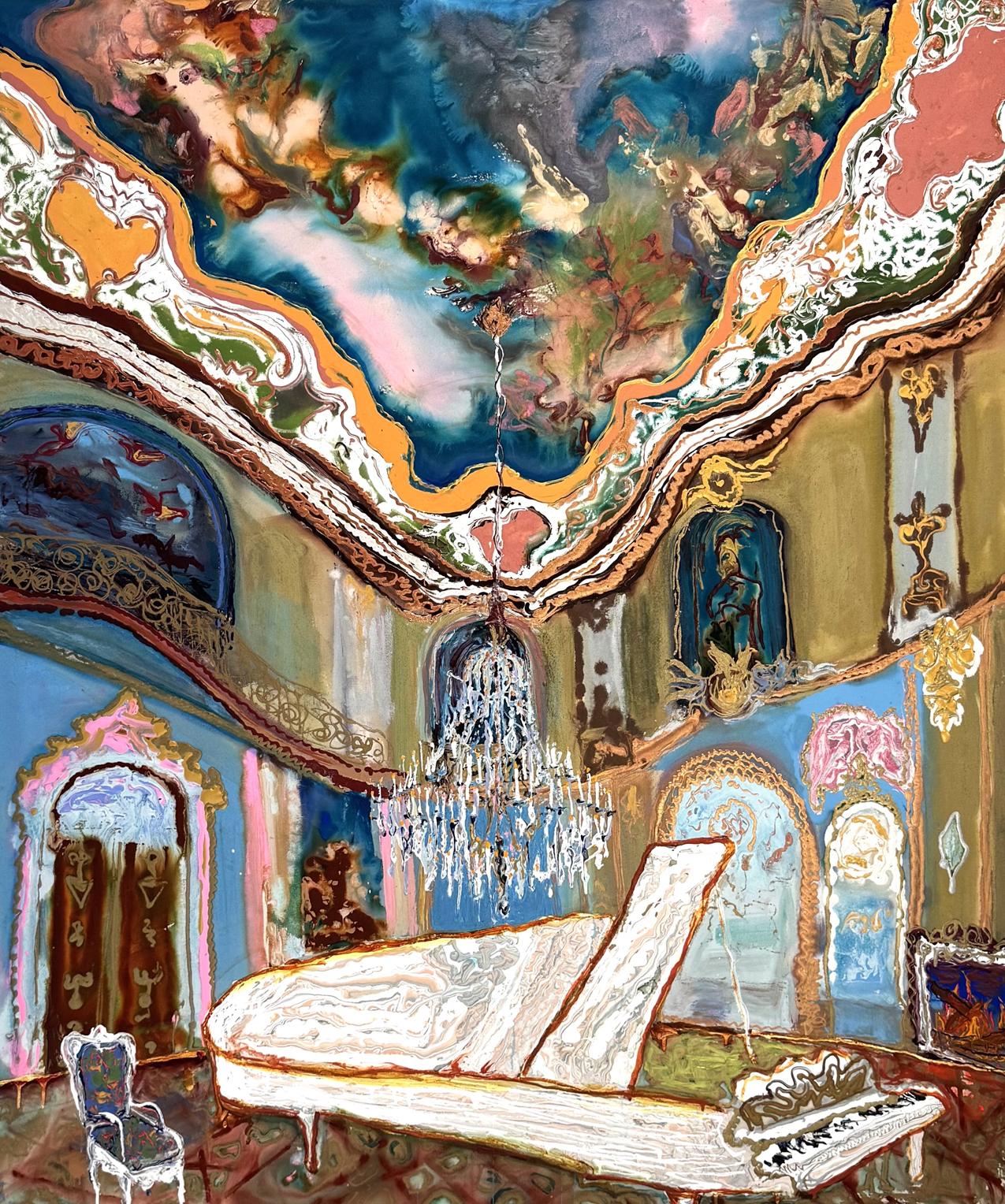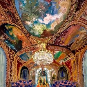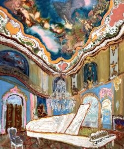 I painted interiors from 1980–1990 as well. Places of grandeur, whether a landscape or an interior, make my heart pound in a way that tells me I must paint them. My subject shifts entirely when I see something I simply have to paint. In my recent interiors, I’m mining the fertile ground of the awe-inspiring Rococo and Baroque. The cavernous spaces adorned with patterns so lush and extreme seem to paint themselves, yet a sense of unease or foreboding appears on its own.