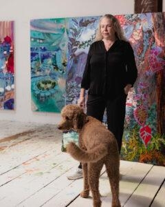 9. Could you walk us through the technical process of a painting, especially the “fast-moving, mostly poured, wet-on-wet technique” you employ? How does relying on the medium and “accident” feed into the final image?
