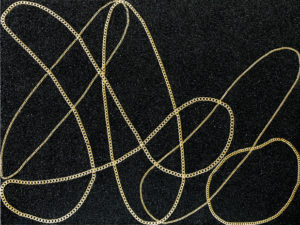 8) You have a new series: Aqua Regia. Can you tell me the story behind its inception? The American experience can be defined as a struggle to find meaning in the material before our bank accounts are vanquished. Traversing an intersection near my Brooklyn studio, noticing detritus impressed into the asphalt by the weight of ceaseless traffic. Rick Ross’s bare, sweaty chest moving in slow motion through a club, swaying gold chains frozen by strobing lights. I invented the technique while playing with a 300-ton hydraulic press. Gold chains are mark-making tools, used like paint or ink.