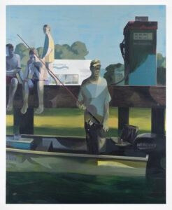 12. Your work has been compared to the documentary photography of Walker Evans and Robert Frank. How do you balance documentary realism with fictional elements in your art?  I don’t think of my work as realist, although I understand that it’s full of specific, recognizable things and people. Since the figures I paint are invented, I don’t think the balance you mention is there. But it’s true—I’m interested in the work of photographers like Stacy Kranitz, who question documentary as a form even while working wi l thin communities and through close relationships with her subjects. In a way, I have a very close relationship to my subjects too, but in a manner completely contrasting to a documentary practice.
