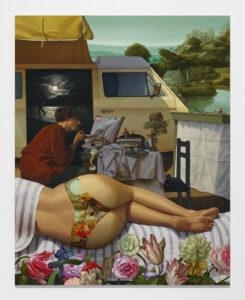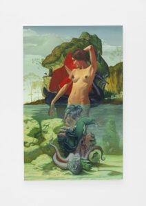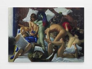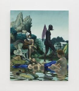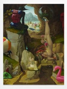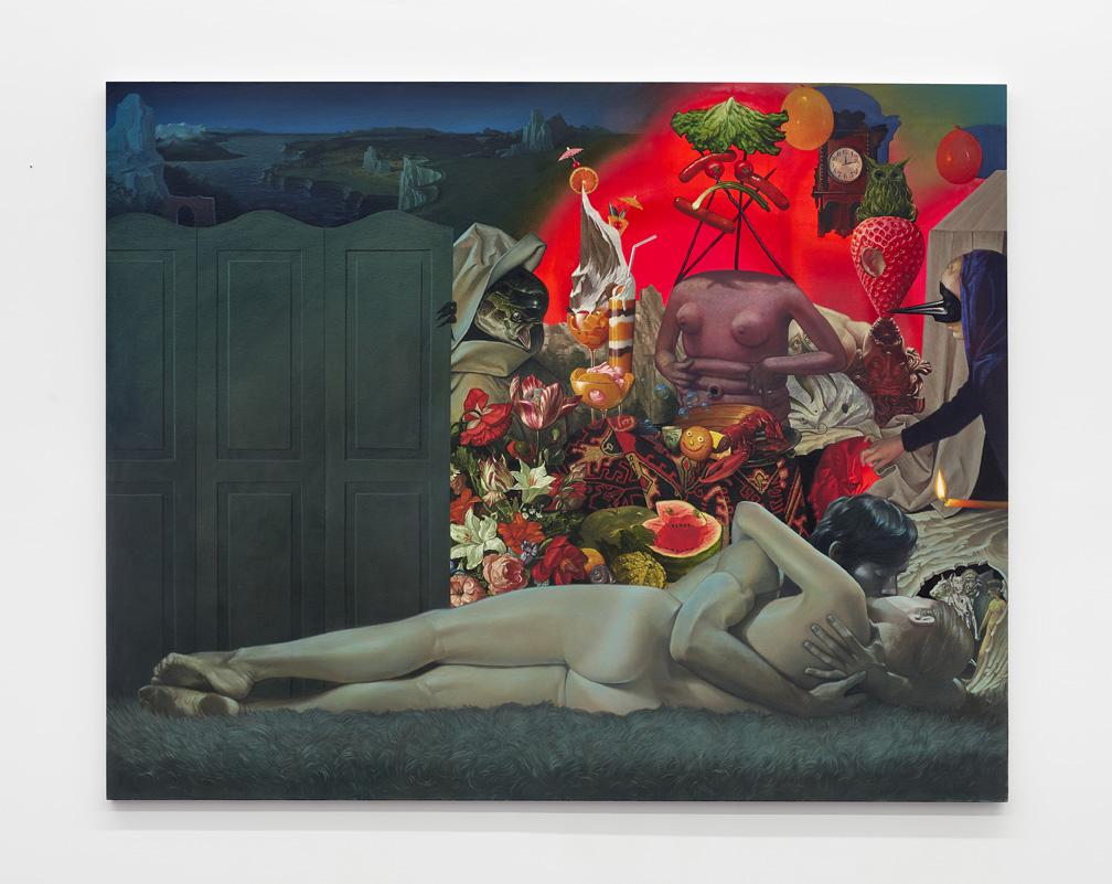15.How does the world around you—socially, politically, or emotionally—make its way into your pieces? Honestly, I try to let as little of the ‘real’ world into my work as possible. A blank canvas is a gift given to the painter without expectation or restriction. Contained within is the entirety of possibility and the weight of emptiness. While it demands nothing in return, I believe the painter has a responsibility not to waste it. We exist in the world outside that canvas. The ‘real’ world. We’re stuck here. This world forces us to adhere the laws of science, the laws of the state, we have to be cold, we have to smell whatever’s in the air, be bound by gravity, develop moral codes, accurately predict the properties of objects that surround us, adhere to basic social norms, sleep, get paper cuts, strive to be ethical, eat food, explain ourselves and engage in a million other banal realities it imposes on us. It is only the pedestrian artist who continues walking in the insipid world to which they were born. When you are given the gift to be a world builder you shouldn’t waste it wallowing in the languid waters of reality. Mimesis is simply the uninspired pointing an uncertain finger at things that we already know. A blank canvas is an opportunity to create an unprecedented reality that can only be experienced within its borders. I want to create worlds where the entirety of what the viewer knows and has experience is irrelevant. I want the reality in my paintings to be unbound by the monotony in which I live. Mostly, I just want to do my absolute best not to waste a blank canvas.