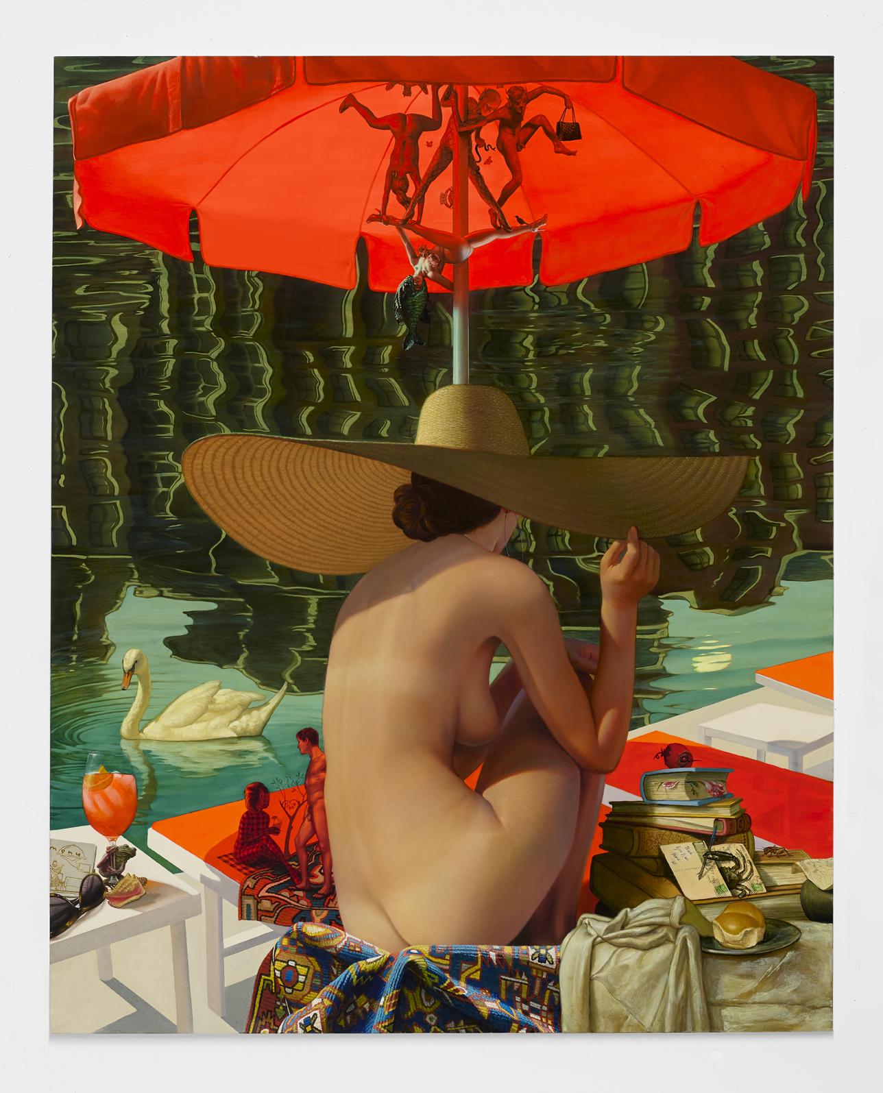 11.If your paintings are meant to create an alternate reality, what do you hope the viewer ultimately takes away from a moment spent inside that world? Art asks questions. It doesn’t dictate or resolve. It’s open ended and experienced differently by all who engage it. In this way, art and life are the same. Its a blessing to live our lives surrounded by people and objects that invite us to inspect ourselves more fully. I suppose my work asks the question, “What would it mean to live with our full selves on display?” It’s a proposition really - a bit like a pitching a proposal for a theme park where we can ride the Ferris wheel with our inner demons. Inside these gates we are free to show the parts we normally hide and revel in revealing the cloistered side of our common humanity. Art allows this funhouse mirror world to exist – the amusements are free to ride, there’s no line and all one has to do is look.