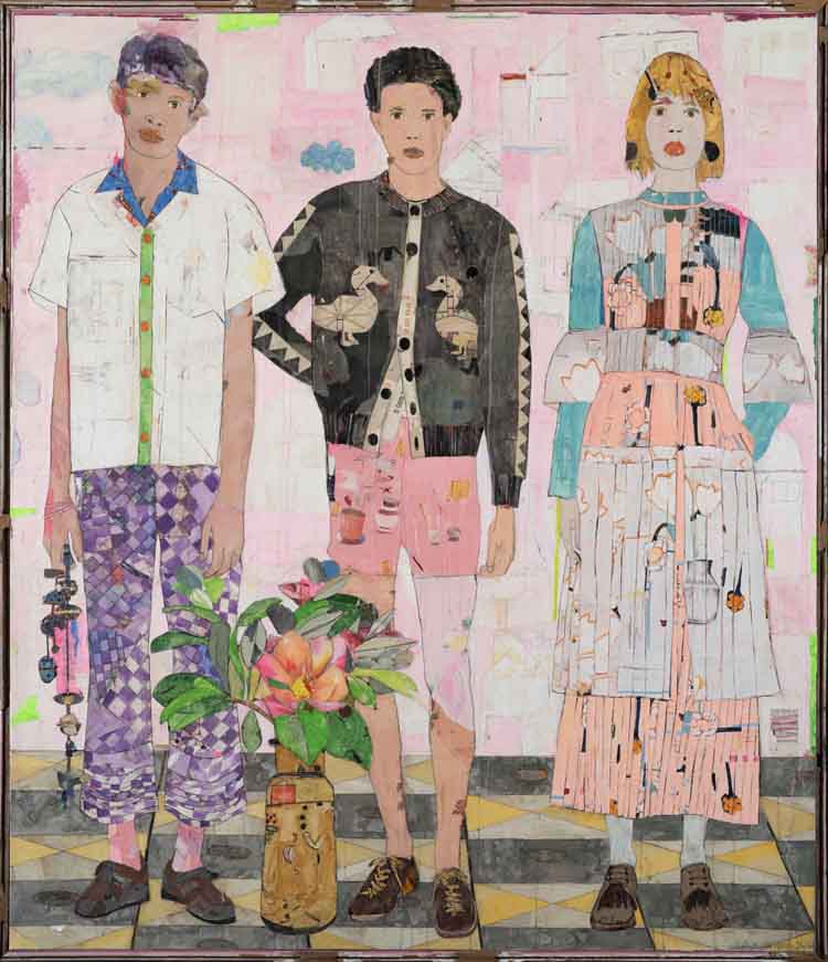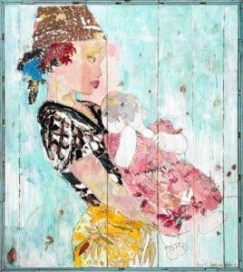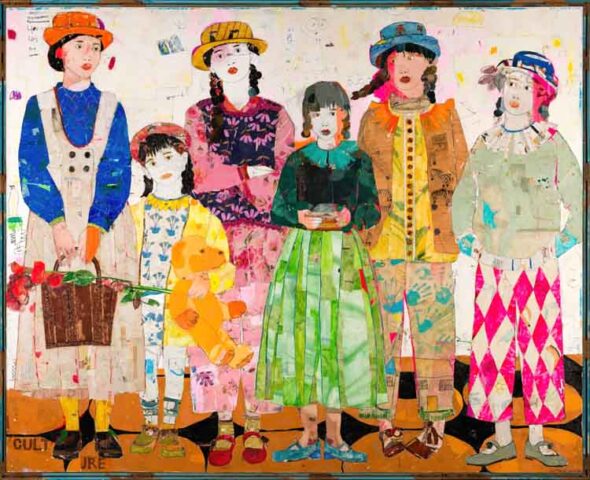 Most of the materials I use are handmade, so in a way there are many artists present in my canvases—through their fabrics, their designs, even their childhood drawings. Every material has a soul because someone created it.