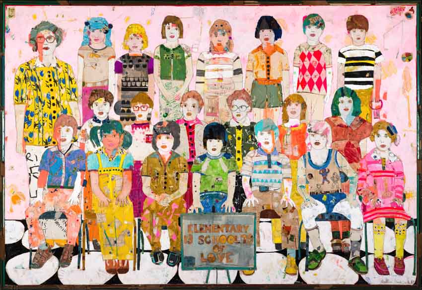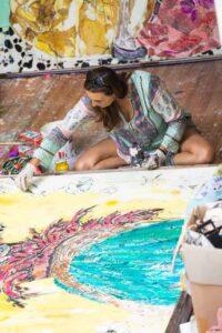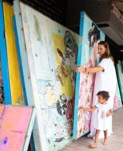 Most of the time, when I’m working, my kids paint beside me on their own canvases or sheets of paper. Later, I often incorporate their drawings into my pieces, so they literally become part of my work.