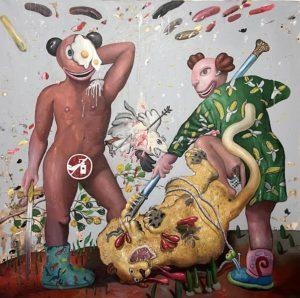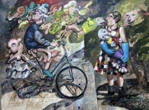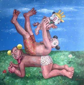 9-Is there any reality behind your paintings or are they completely from imagination? There is a significant amount of both reality and imagination. I would never be able to paint reality without using my imagination. In my pictures I focus on individuals and especially couples. The theme of marriage and relationships, as a metaphysical ‘union for life’ and a vision of happiness, is often reflected in my paintings. However, all complexities that follow human relationships and their interaction with the world on political, environmental and social aspects, form the realistic part of my paintings. On the other side my imagination is responsible for the unseen and hidden emotion that each character I paint holds within to tell the untold.