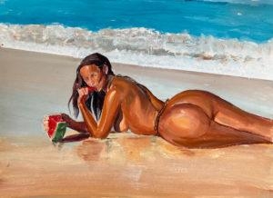 5- Do you use live models or is it all from your imagination? For realistic paintings I do have models! They’re more my friends than professional models or both! But the other series of paintings which are a little bit wild are imaginative!